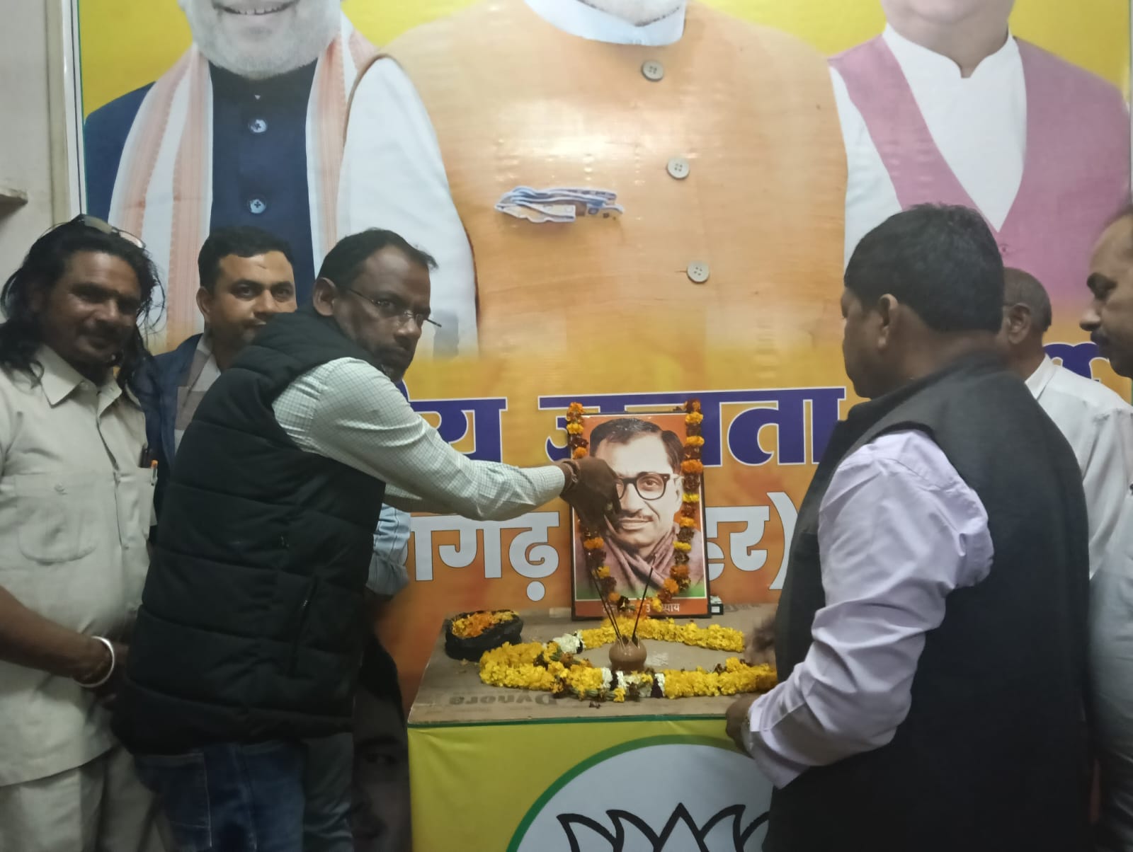 शहर भाजपा की ओर से पार्टी कार्यालय में आयोजित पुण्यतिथि कार्यक्रम में भाजपा कार्यकर्ताओं ने श्रद्धासुमन अर्पित करते हुए भावपूर्ण श्रद्धांजलि दी। इस अवसर पर शहर मण्डल अध्यक्ष ललित पंवार, पूर्व भाजपा अध्यक्ष जयप्रकाश सरावगी, महेश शर्मा, मनोज शर्मा, प्यारे लाल कटारिया एवं अरूण चौधरी ने पुष्पांजलि अर्पित करते हुए अपने संबोधन में पंडित दीनदयाल उपाध्याय के व्यक्तित्व एवं कृतित्व पर प्रकाश डाला।इस अवसर पर शहर मंडल अध्यक्ष ललित पंवार, पूर्व शहर मंडल अध्यक्ष जयप्रकाश सरावगी, महेश शर्मा, मनोज शर्मा, प्यारेलाल कटारिया, वरिष्ठ पार्षद रामावतार पंवार, पूर्व महामंत्री जगदीश सैनी, अरुण सैन, ओबीसी मोर्चा जिला उपाध्यक्ष अरुण चौधरी, एससी मोर्चा अध्यक्ष संतोष बाल्मीकि, युवा मोर्चा अध्यक्ष चंद्रकांत जाजोदिया, सोशल मीडिया प्रभारी कमल सुरोलिया, जिला मीडिया प्रभारी मयंक शर्मा, युवा मोर्चा महामंत्री रवि भार्गव, अंकित सुरोलिया, पूर्व युवा मोर्चा महामंत्री विक्रम तंवर, पूर्व पार्षद सम्पत कुमावत, अशोक पुजारी, कमल शर्मा, हरीराम कुमावत, पवन पारीक, राकेश सैन, पूर्व उपाध्यक्ष विजय शर्मा, प्रदीप पारीक, मुकुल शर्मा आदि कार्यकर्ता उपस्थित थे