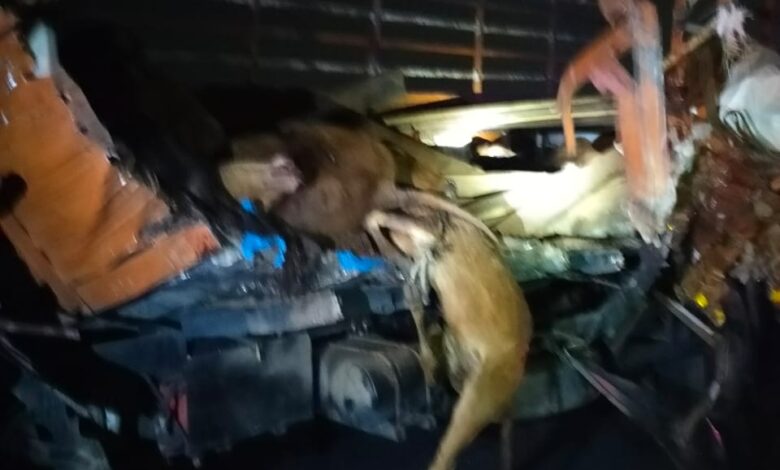 दिल्ली मुंबई एक्सप्रेस वे पर गोवंश से भरी कंट्रा टकराई 10 गोवंशो की मौत गौ तस्कर फरार