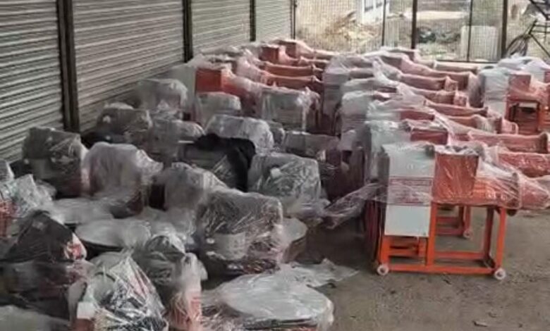 तिजारा में प्रजापति बंधुओं चाक और मिट्टी गुथने की मशीन का वितरण किया गया।