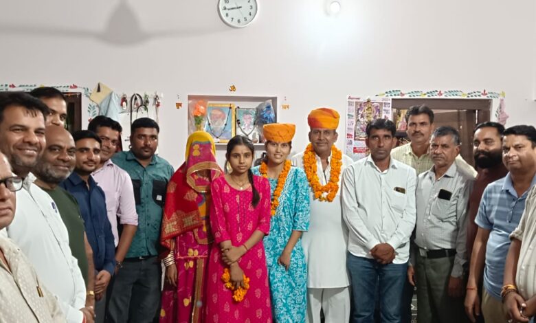 (हरिसिंह चौहान)डीडवाना।डॉ. प्रियंका चांपावत का मेडिकल ऑफिसर चिकित्सा अधिकारी के पद पर चयन होने पर समाज के प्रबुद्ध नागरिकों द्वारा साफा गुलदस्ता भेंट कर सम्मान किया गया।इस उपलक्ष में प्रियंका के पिताजी भंवरसिंह चांपावत का मुंह मीठा करवाकर साफा पहनाकर स्वागत किया।साथ ही डॉ. की माताजी को भी शाल ओढ़कर सम्मान किया गया।छोटे से गांव की बेटी ने इस पद पर नियुक्ति पाकर छोटे से गांव बरड़वा का नाम रोशन किया।जो यहां की समाज की बेटियों के लिए प्रेरणास्पद संदेश मिला है।सभी समाजबंधु इनके उज्जवल भविष्य की मनोकामना करते हैं।तहसील अध्यक्ष प्रदीपसिंह ने बताया कि बेटियां देश में हर भूमिका को निभाने में आगे आ रही हैं।इस उपलक्ष पर तहसील अध्यक्ष प्रदीपसिंह चांदावत जिला उपाध्यक्ष ईश्वरसिंह कापड़ौद रामनिवाससिंह भाटी युवाध्यक्ष दिलीपसिंह गौड गुमानसिंह गोगावत रमेशसिंह पंवार भवानीसिंह गोगावत गिरधारीसिंह भाटी हरिसिंह चौहान गोरधनसिंह डीडवाना पूर्णसिंह दीपेंद्रसिंह आदि उपस्थित रहें।