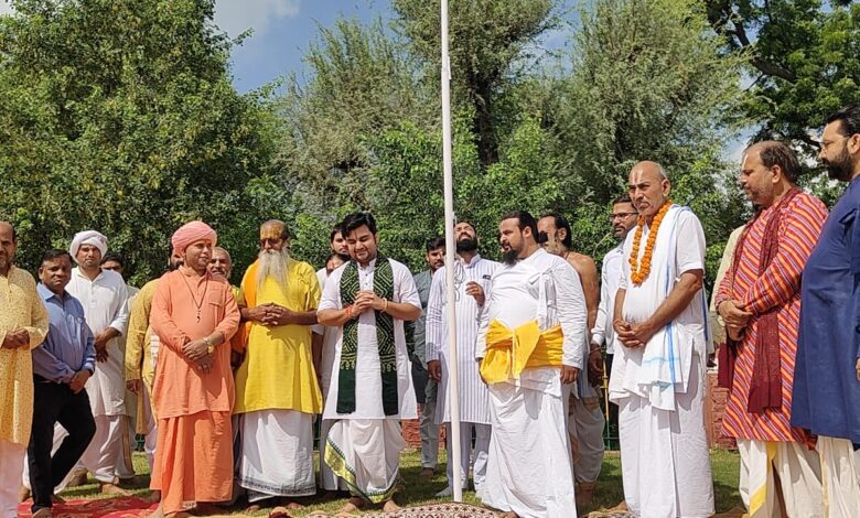 द्वादश ज्योतिर्लिंगों की स्थापना पर भूमि पूजन ध्वजारोहण सत्संग का आयोजन