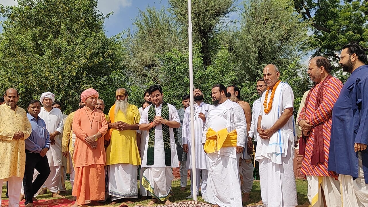 द्वादश ज्योतिर्लिंगों की स्थापना पर भूमि पूजन ध्वजारोहण सत्संग का आयोजन